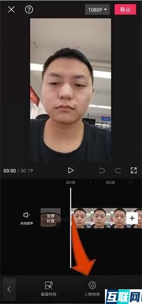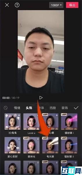 2. 在剪辑页面,选择【特效】,选择【人物特效】,选择【头饰】,