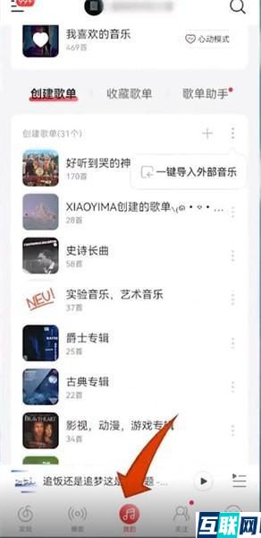 1. 首先打开网易云音乐,点击【我的】,选择一个歌单进入。