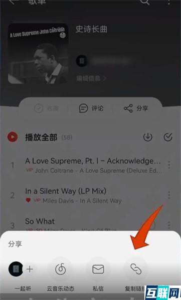 2. 在歌单界面,点击【分享】按钮,点击复制链接,