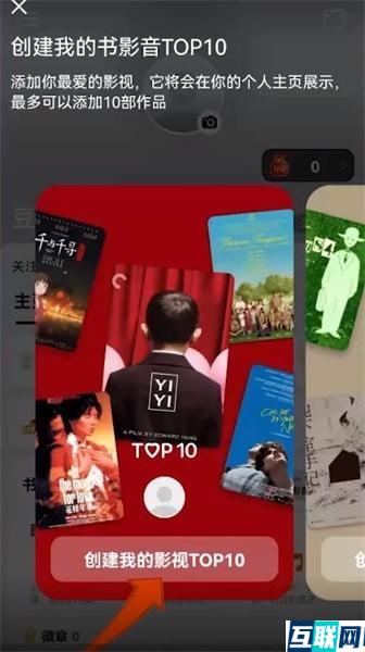 2. 进入页面选择【创建我的影视top10】就可以创建你的片单了。