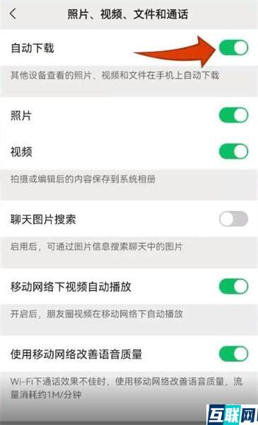 2. 在【设置】页面点击【通用】,然后点击【照片、视频、文件和通话】,在【照片、视频、文件和通话】关闭【自动下载】,这样你以后接收的图片视频便不会自动下载了。