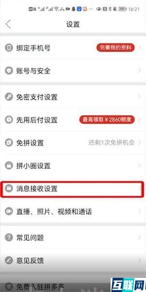 2. 接着在设置界面点击【消息接收设置】,进入消息接收设置界面,