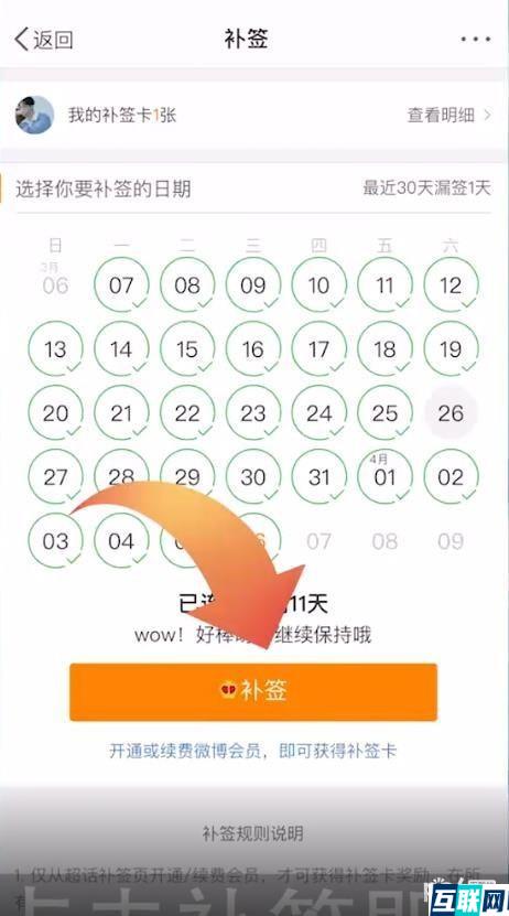 3. 在前30天内选择要补签的日期,点击补签即可。