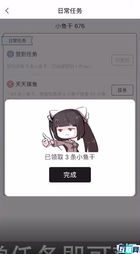 2. 点击并进入日常任务页面,完成日常任务即可获得小鱼干。