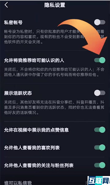 您的位置: 网站首页> 大家问> 当前文章 抖音怎么关闭推送给可能认识的人 老董2023-10-23165围观,100赞 1. 首先打开抖音短视频app,进入抖音后点击底端我的选项,在个人页面点击菜单选项, 2. 然后点击设置,再点击隐私设置, 3. 滑动按钮关闭允许将我推荐给可能认识的人就可以了。 很赞哦! python编程网提示:转载请注明来源www.python66.com。有宝贵意见可添加站长微信(底部),获取技术资料请到公众号(底部)。同行交流请加群 上一篇:淘宝买家秀在哪看 下一篇:电脑怎么登录微信号 相关文章 vivo屏幕失灵怎么强制关机 实用工具箱如何进行图片信息修改 航旅纵横客服在哪里找 苹果手机电池容量怎么看 如何申请一码通 快捷指令怎么设置 懂球帝怎么设置挂件 快影不透明度怎么调 文章评论 抖音怎么关闭推送给可能认识的人文章写得不错,值得赞赏 最新文章 浏览器指纹大全 Jenkins安全最佳实践包括哪些关键方面? Jenkins中如何实现代码部署的自动化? 在Jenkins中如何配置和使用构建流水线? 如何在Jenkins中管理和处理构建失败? 如何在Jenkins中实现构建任务的自动化触发? 推荐阅读 如何在Java程序中预防死锁 DolphinScheduler的机器学习任务调度有哪些功能和优 Java中如何正确使用wait()和notify()方法? 红米手机文件管理在哪里 一嗨租车怎么租车 标签云 通俗深刻 小白福利 互联网随笔 编程技术博客 猜你喜欢 vivo屏幕失灵怎么强制关机 实用工具箱如何进行图片信息修改 Android中SQLite数据库优化策略有哪些? Golang中如何实现函数的可变参数? Spring Cloud如何支持国际化和本地化? 站点信息 网站程序:Laravel 客服微信:a772483200