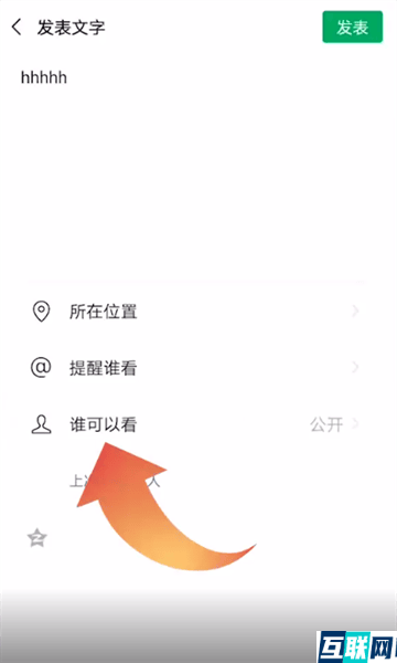 2. 然后点击右上角相机选项,编辑好内容之后点击谁可以看,