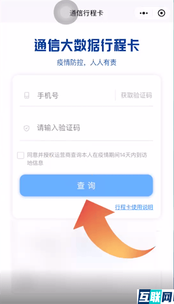 3. 接下来输入手机号,再点击获取验证码,输入验证码之后再点击查询即可获取行程码了。