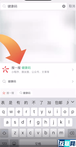 2. 这时点击搜索选项,再点击搜一搜健康码,
