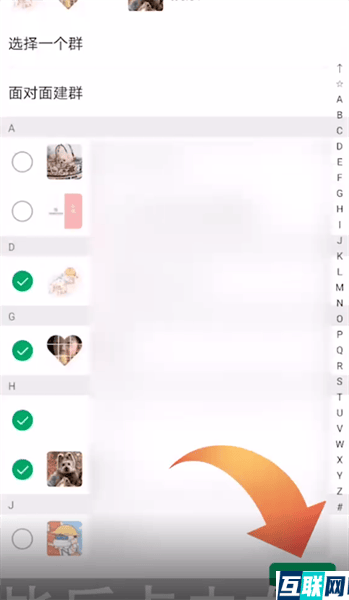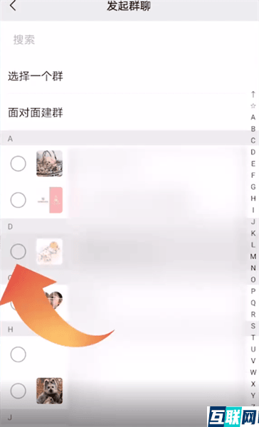 2、接下来点击“发起群聊”选项,在通讯录页面选择好友,