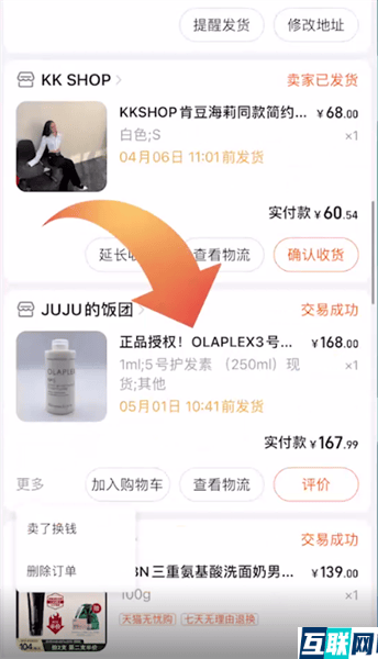 3. 再点击左侧更多选项,点击删除订单就可以成功删除了。