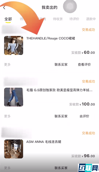 2. 这时点击我卖出的选项,找到需要删除的链接,