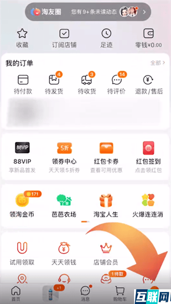 1. 打开淘宝app,点击首页底端我的淘宝选项,