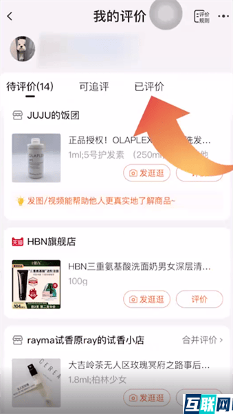 2. 然后点击待评价选项,再点击已评价选项,