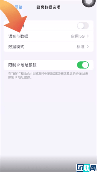 2. 这时点击蜂窝数据选项,再点击语音与数据功能,