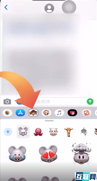 3. 然后回到信息页面之后点击左下角的相册图标,这时再点击左下角的收藏图标,然后点击猴子图标,即可开始使用创建的拟我表情,