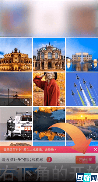 2. 接下来选择需要进行拼图的截图,点击右下角的开始拼图,