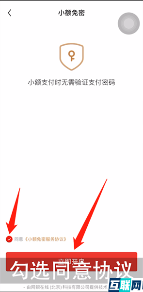 3. 点击【小额免密】,勾选同意协议,点击立即开启,
