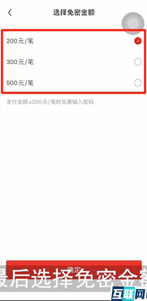 4. 最后选择免密金额,点击确定,完成身份验证即可。