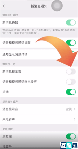 2. 点击新消息通知功能,进入新消息通知页面后先开启“新消息提示音”和“语音和视频通话来电铃声”功能,