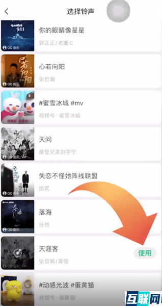 4. 然后再点击来电铃声选项,接着点击更换铃声,选择自己喜欢的歌曲,接下来再点击使用即可更换成功了。