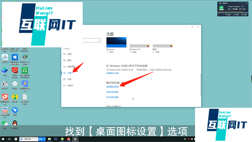 2. 接着在界面左侧点击【主题】,找到【桌面图标设置】选项,