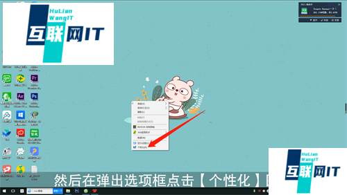 1. 首先在电脑桌面空白处右键鼠标,然后在弹出选项框点击【个性化】图标,