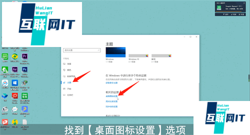 2. 接着在界面左侧点击【主题】,找到【桌面图标设置】选项,