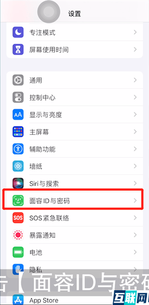 1. 首先打开苹果13手机的系统设置,然后点击【面容ID与密码】选项,输入密码进入,
