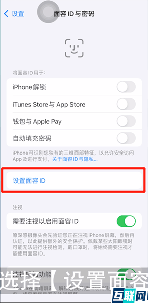 2. 接着选择【设置面容ID】,根据提示完成面容ID设置,