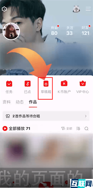 2. 接着点击我的页面的【草稿箱】即可看到自己保存却没有发布的歌曲。