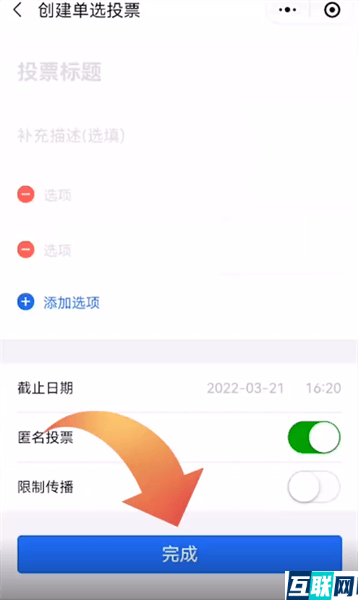 您的位置: 网站首页> 大家问> 当前文章 微信怎么投票 老董2023-10-26174围观,144赞 1. 想要发起投票的话,首先打开微信app,点击顶端搜索栏,输入腾讯投票,点击搜一搜腾讯投票, 2. 这时点击腾讯投票功能,接下来选择单选投票还是多选投票, 3. 输入标题、选项,选择截止日期,是否是匿名投票,再点击完成就可以了。 很赞哦! python编程网提示:转载请注明来源www.python66.com。有宝贵意见可添加站长微信(底部),获取技术资料请到公众号(底部)。同行交流请加群 上一篇:朋友圈怎么关闭 下一篇:拼多多手机号解绑 相关文章 vivo屏幕失灵怎么强制关机 实用工具箱如何进行图片信息修改 航旅纵横客服在哪里找 苹果手机电池容量怎么看 如何申请一码通 快捷指令怎么设置 懂球帝怎么设置挂件 快影不透明度怎么调 文章评论 微信怎么投票文章写得不错,值得赞赏 最新文章 浏览器指纹大全 Jenkins安全最佳实践包括哪些关键方面? Jenkins中如何实现代码部署的自动化? 在Jenkins中如何配置和使用构建流水线? 如何在Jenkins中管理和处理构建失败? 如何在Jenkins中实现构建任务的自动化触发? 推荐阅读 一嗨租车怎么租车 DolphinScheduler的机器学习任务调度有哪些功能和优 Java中如何正确使用wait()和notify()方法? 如何在Java程序中预防死锁 红米手机文件管理在哪里 标签云 通俗深刻 小白福利 互联网随笔 编程技术博客 猜你喜欢 vivo屏幕失灵怎么强制关机 实用工具箱如何进行图片信息修改 Android中SQLite数据库优化策略有哪些? Golang中如何实现函数的可变参数? Spring Cloud如何支持国际化和本地化? 站点信息 网站程序:Laravel 客服微信:a772483200