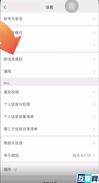 2. 点击设置功能,这时再点击新消息通知选项,