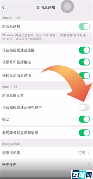 3. 接下来滑动按钮关闭语音和视频通话来电铃声选项就可以关闭了。