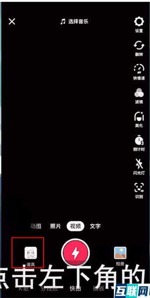 2. 在拍摄页面点击左下角【道具】进入,点击【搜索】图标。