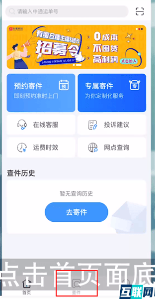 2. 然后点击首页面底部【查件】。
