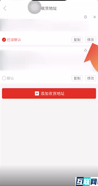 2. 在个人中心点击收货地址,找到需要修改的地址,点击修改,