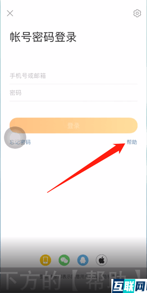 2. 然后选择账号密码登录,点击下方的【帮助】选项,