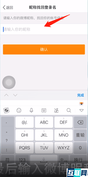 3. 再选择【找回登录名】,最后输入微博昵称,点击确认,就可以通过昵称来找回登录名了。