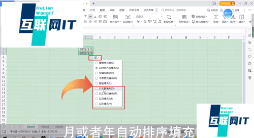 3. 3.点击第二个单元格右下方的标签,即可设置让日期以天,工作日,月或者年自动排序填充。