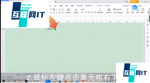 2. 2.鼠标左键点击单元格右下角,拖住往下拉一个单元格。
