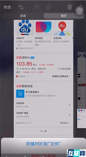 3. 3.这时拖动右侧的长度条即可看到一整页的内容都被截取下来了,点击左上角的完成选项即可保存为pdf格式了。