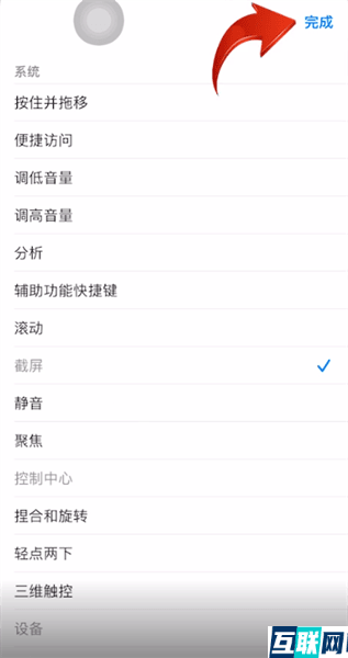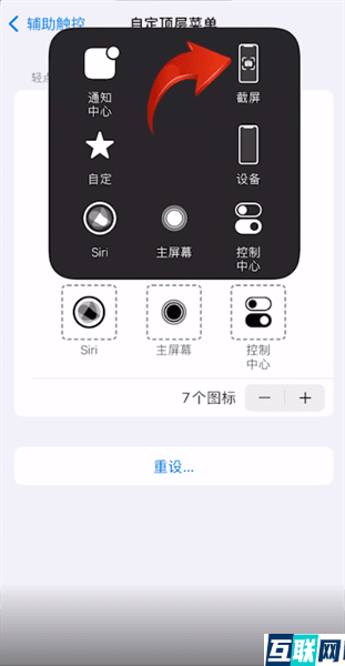 3. 3.依次点击辅助触控-自定顶层菜单,这时在页面右下角点击加号即可增加新的图标,然后点击截屏,再点击完成,