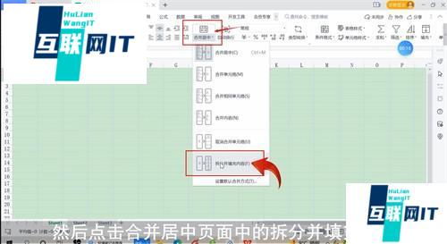 3. 3.然后点击合并居中页面中的拆分并填充内容即可将Excel一格分为上下两层。