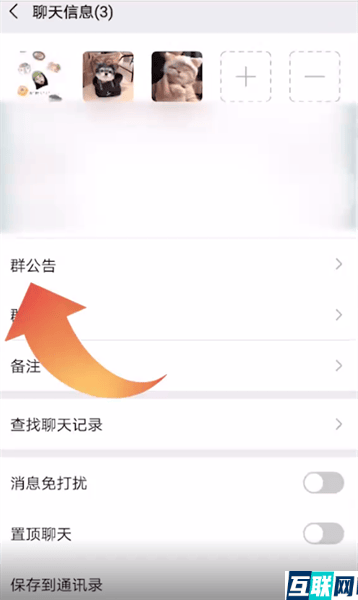 3. 3.然后在聊天信息页面点击群公告,输入聚会通知之后点击完成,点击发布就可以设置成功了。