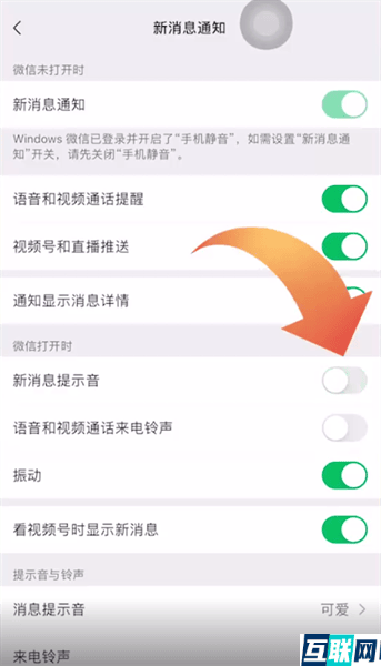 3. 3.接下来滑动按钮关闭新消息提示音就可以取消提示音了。