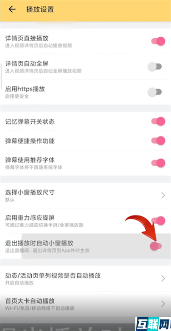 3. 3.在设置页面中点击播放设置,最后再勾选【退出播放时自动小窗口播放】即可开启手机中的小窗口功能。