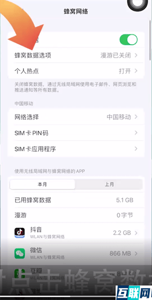 2. 2.这时点击蜂窝数据选项,再点击语音与数据功能,
