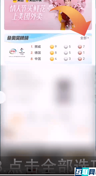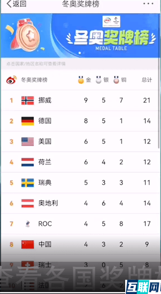 2. 2.这时即可看到冬奥会奖牌榜版块,