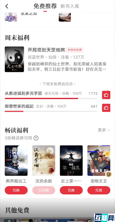 1. 起点读书应用中新用户可以获得一定的免费阅读券,而且向app充值也可以获得一定的阅读券,起点读书每一段时间都有可供阅读券兑换的书籍,而且起点会员也有一个免费阅读的书单列表,办理会员也可以阅读其中的书籍。