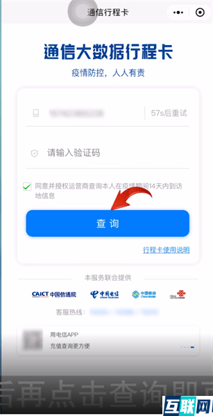 4. 再点击获取验证码,输入验证码之后再点击查询即可获取行程码了。